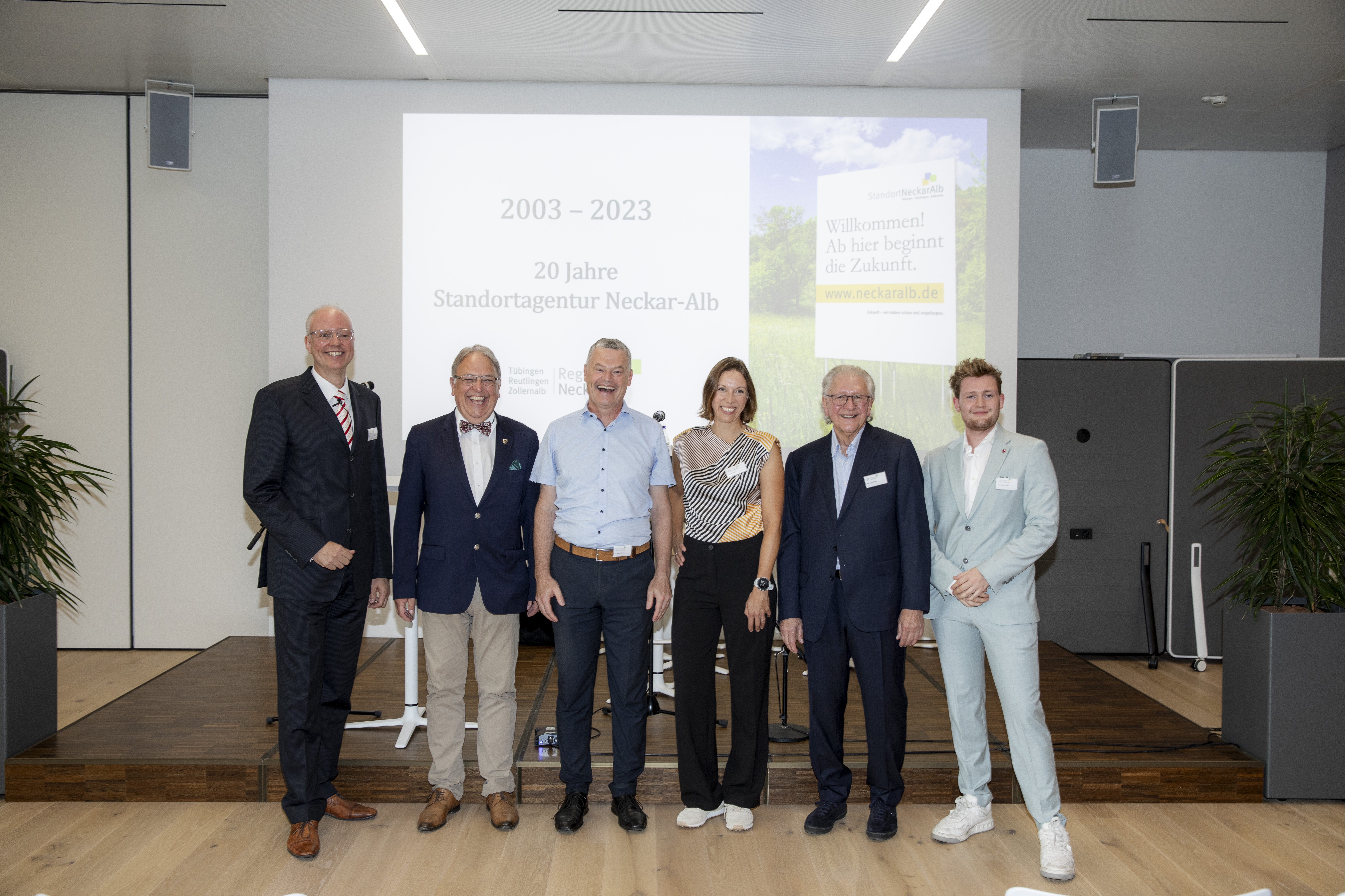 Mit rund 100 Gästen aus Wirtschaft und Verwaltung feierte die Standortagentur Neckar-Alb am 12.09.2023 Ihr 20-jähriges Firmenjubiläum. Nach einer Rückschau auf 20 Jahre gemeinschaftliches Standortmarketing und einer angeregten Podiumsdiskussion durfte der Abend gemütlich ausklingen. Mehr