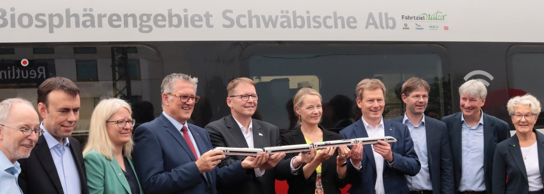 in perfektes Paar: Ein hochmoderner und klimafreundlicher ICE 4 wurde am 24. Juli 2025 in Reutlingen mit Wasser aus der Großen Lauter auf den Namen…