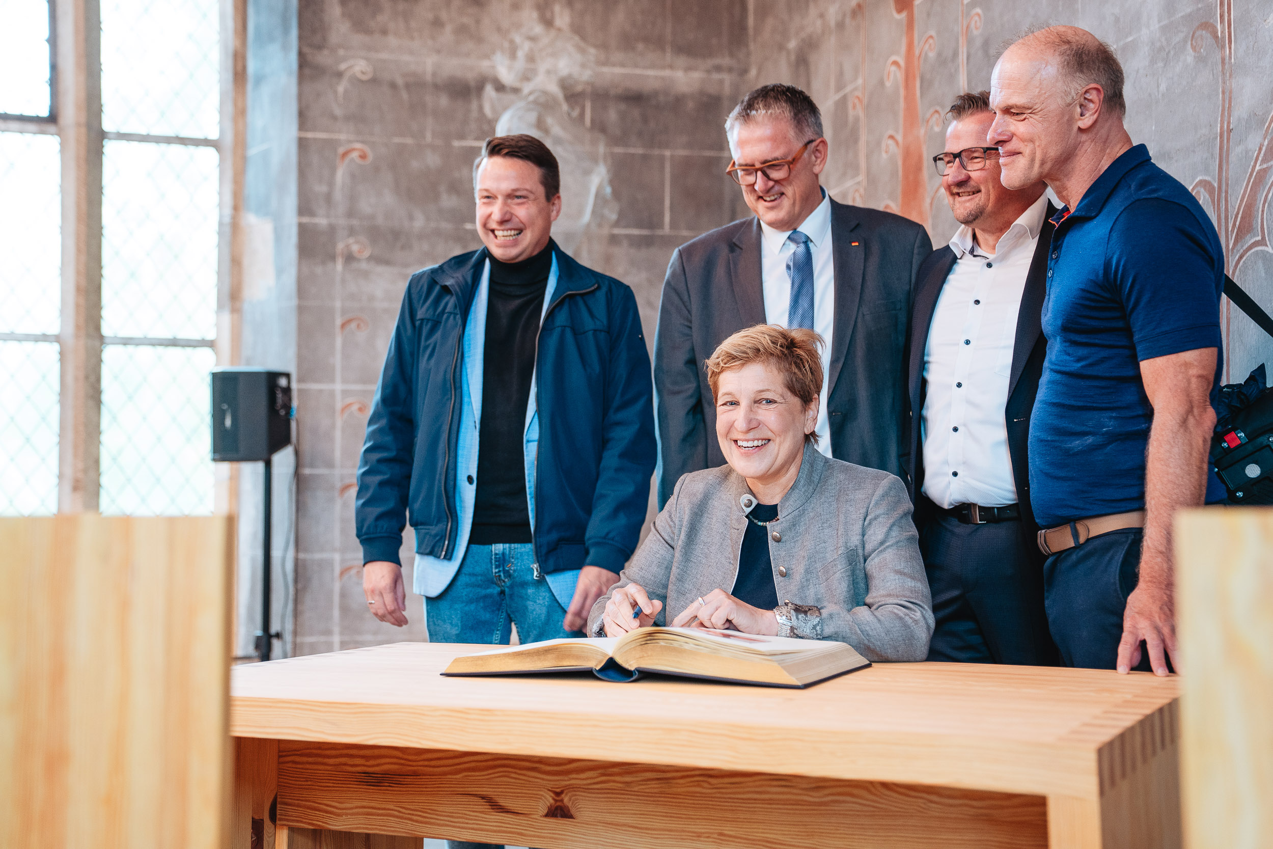 Nicole Razavi, Ministerin für Landesentwicklung und Wohnen Baden-Württemberg, hat der Stadt Pfullingen die Städtebauplakette in Bronze überreicht.…